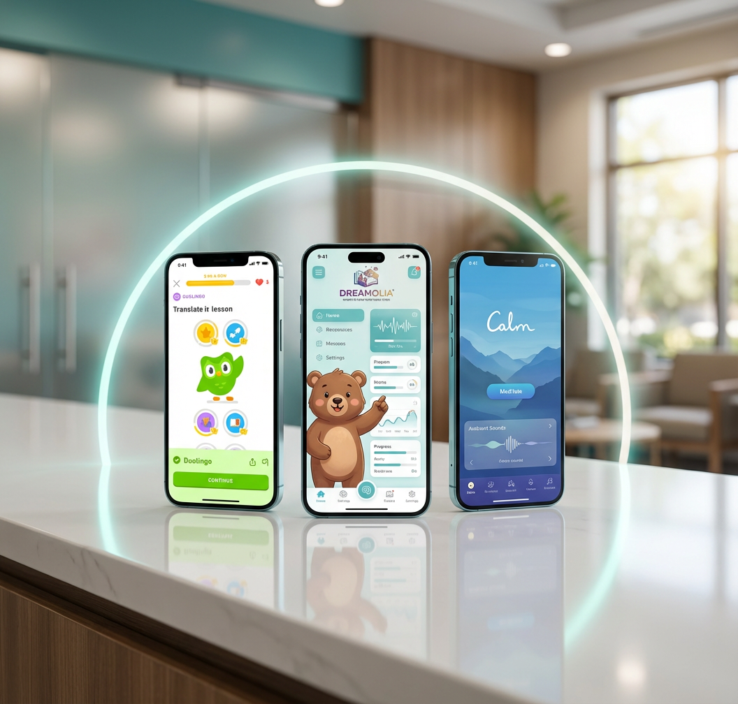 DREAMOLIA® combines Duolingo-grade engagement with Calm-like health monetization.